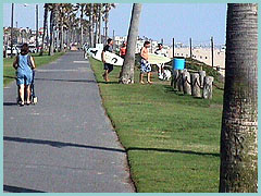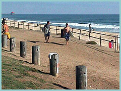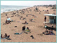Tourists flock to the city beach during summer to enjoy all that is the heart of Surf City, USA. The ratio of kids to adults probably jumps from 50/50 during the winter to 80/20 in summer. Parking is close, food is easily found, rentals of all types abound (especially near the pier), and lifeguards are on duty daily. Surfing is restricted during heavy crowds between the pier and Beach Blvd. A paved boardwalk — ideal for biking and skating — runs the length of the beach, separating the parking lot and sand.