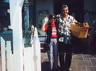 After a delicious breakfast served by a friendly and busy and very efficient waitress, we said goodbye to John & his wife, and headed back across the street, where we stopped at Grannie Annie's Attic (273 S. Ocean Ave). It was a nice antique store with lots of cool stuff at very reasonable prices, and the storekeeper, Cathy, was very friendly. (Cathy says "John from the Sea Shanty is the best, most honest house builder you'll every meet".) The antiques are much nicer here and way less expensive than in L.A. They also have lots of cool semi-anitiques that make easy "real" souveniers without spending too much. I found a really cool minature antique looking old west village that would fit perfect on my train layout at home, so I scooped it up. It's almost an exact replica of this old west town.
