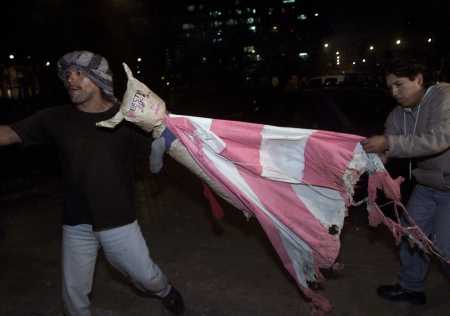 Massive protests are also occuring in other countries. Pictures not available. Americans are not given true news! And they wonder why "American Media" got anthrax? How obvious does it have to be? Let's see, there's two words in the name, "American" and "Media." Maybe Bush can't count that high.
